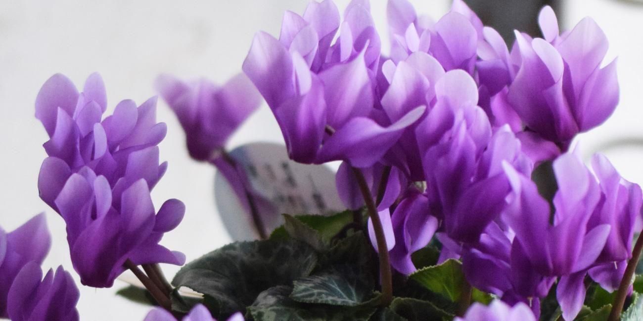 見上げたくなるシクラメン「フローエル」 ハンギングに仕立てるとエレガント♡枝垂れ咲くパープルのシクラメン
