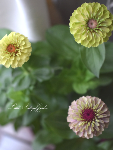 八重咲のお花はライム〜アンティークピンクへと色変わりします。