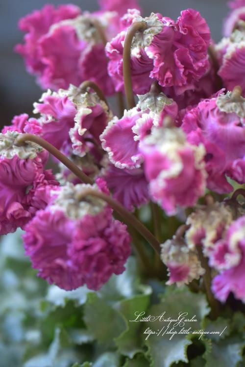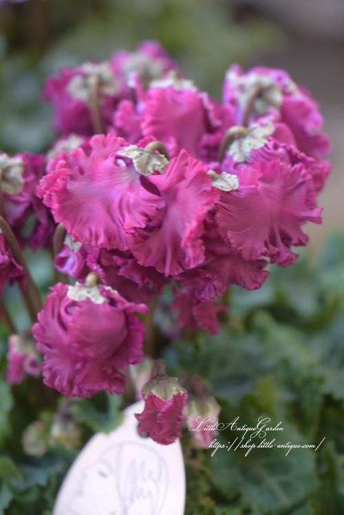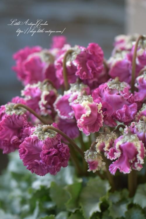 ワインレッドのシックな花色にフリルが入る大人なシクラメン。