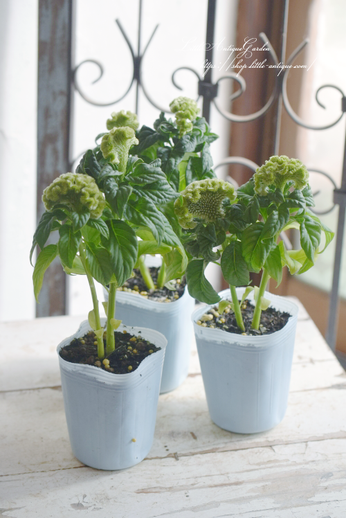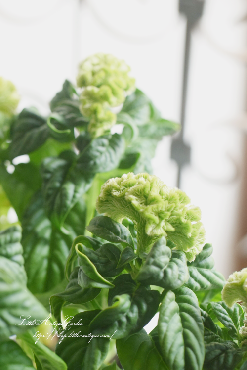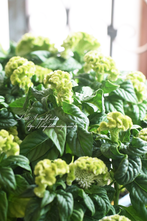 グリーンのケイトウは大変珍しく主張しないのでとっても名わき役!