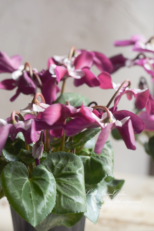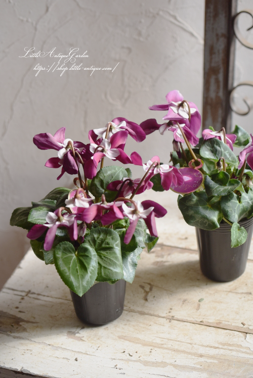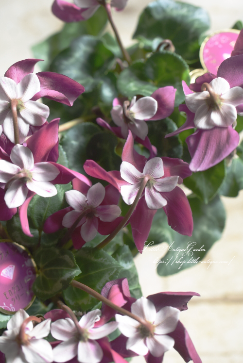 ちょっぴりくすんだパープルが落ち着いた大人っぽさを演出してくれるミニシクラメン。