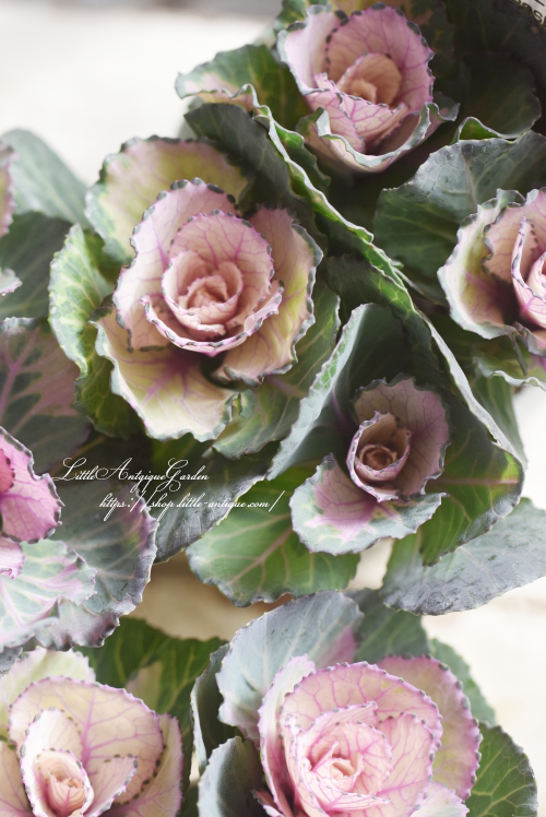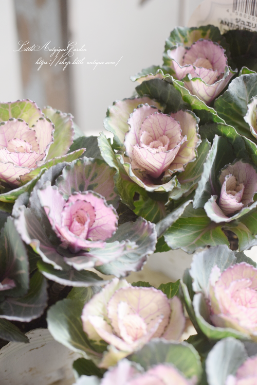 ピンクの葉っぱにほんのり葉脈が浮き出る可愛らしい葉牡丹。