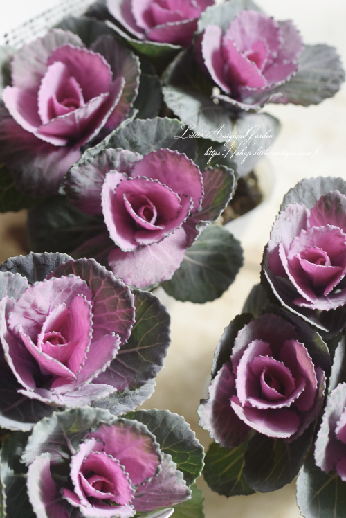 ハボタン・ジュエリーシリーズ・バニラ&ローズ(アンティークパープル) 控えめパープルが大人可愛いミニ葉牡丹です