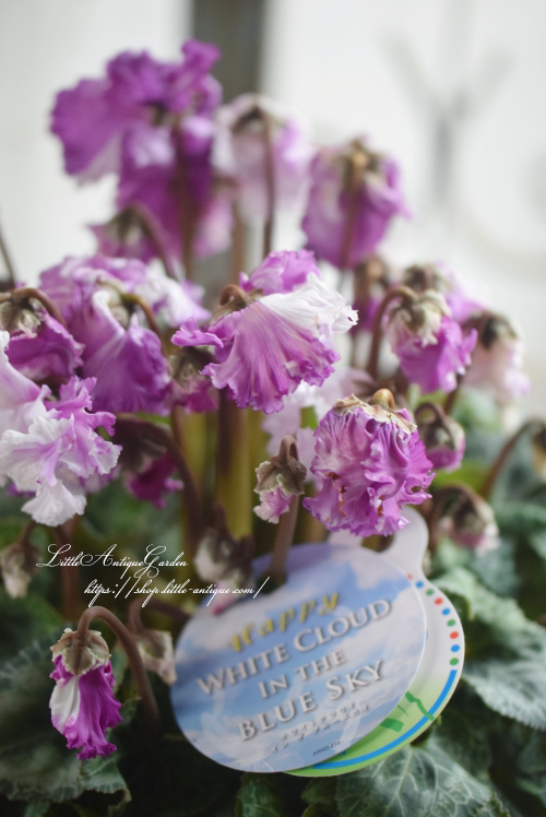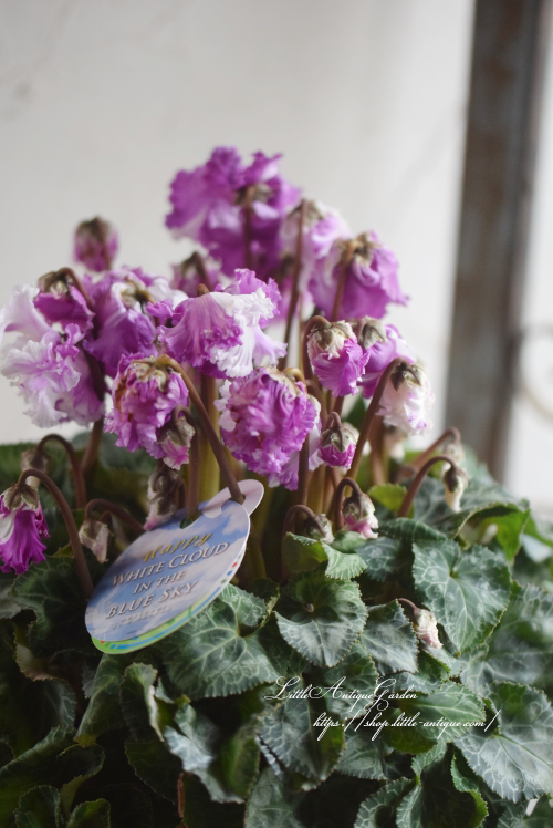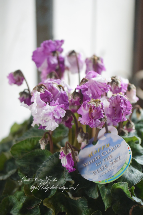 1点物シクラメン「ハッピーホワイトクラウドインザブルースカイ」フリル咲き!6寸サイズ
