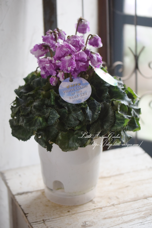 1点物シクラメン「ハッピーホワイトクラウドインザブルースカイ」八重フリル咲き!6寸サイズ